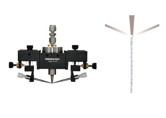 Each ultrasonic nozzle operates at a specific resonant frequency, which determines the median size of the droplet. The difference in droplet size is very small, and its distribution can be accurately predicted within a certain range through mathematical calculations. For example, a 120 kHz nozzle produces a median droplet size of 18 microns when spraying water. The higher the frequency, the smaller the decrease in median value.